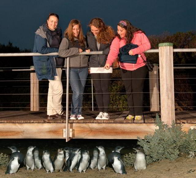 Каждый день, на закате солнца, эти чудесные создания возвращаются к своим норкам на побережье после долгой рыбалки в океане. В разное время года из океана выходит от нескольких сотен до нескольких тысяч пингвинов. Организованными группками пингвинчики выходят из морской пены и перекрикиваясь друг с другом, вразвалочку направляются к своим жилищам. Для посетителей парада пингвинов организованы специальные мостки и трибуны, с которых вы сможете наблюдать пингвинов на расстоянии вытянутой руки. Парад является одним из самый популярных туристических аттракционов Австралии.