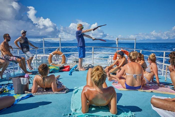 Захватывающий круиз к двум рифам в акватории Большого Барьерного рифа. Около 4 часов неограниченного плавания в открытом океане среди морских обитателей. Дружественный персонал судна поможет освоиться новичкам и предоставит все необходимое для плавания. Этот круиз предоставляет возможность познакомиться с подводным миром рифа людям всех возрастов и физических возможностей.