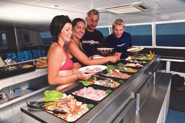 Круиз на новом современном рифовом судне, вместимостью до 100 чел. Экипаж ограничивает количество туристов до 60 для большего комфорта отдыхающих.